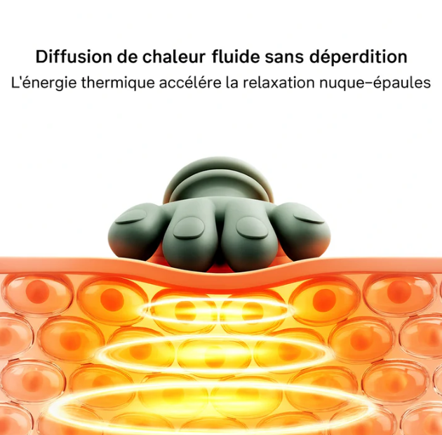 La fonction chauffante intégrée diffuse une chaleur douce qui détend les muscles raides et améliore la circulation sanguine.Idéale pour détendre le cou, les épaules et le dos, elle transforme votre séance de massage en un moment cocooning absolu.